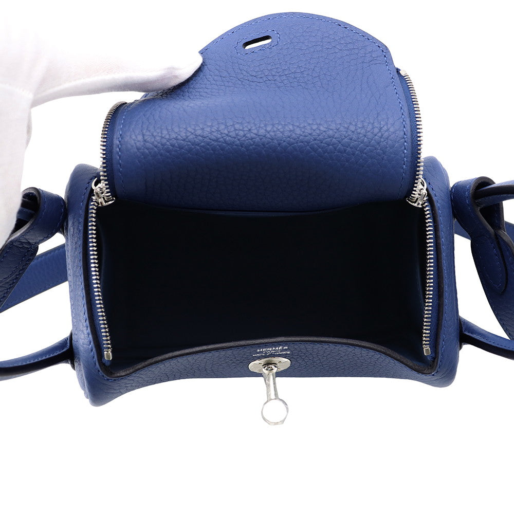 HERMES Lindy Blue Tie Taurillon Clemence Size Mini