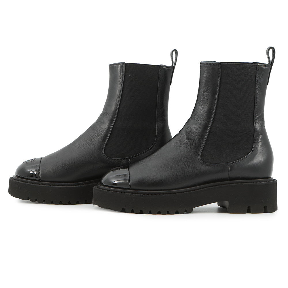 • 将图像加载到图库查看器中,CHANEL CC Logo Side Gore Short Boots BlackG38218 Leather Patent Leather Size 38C