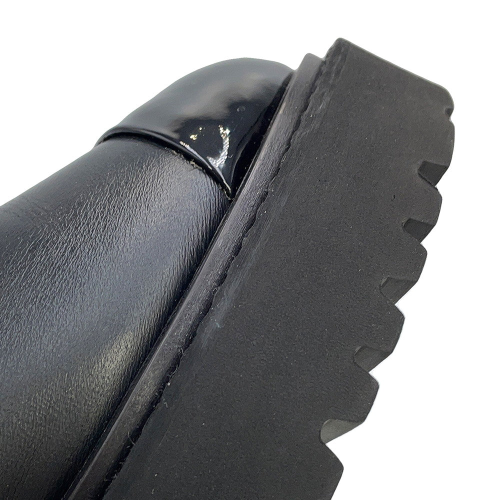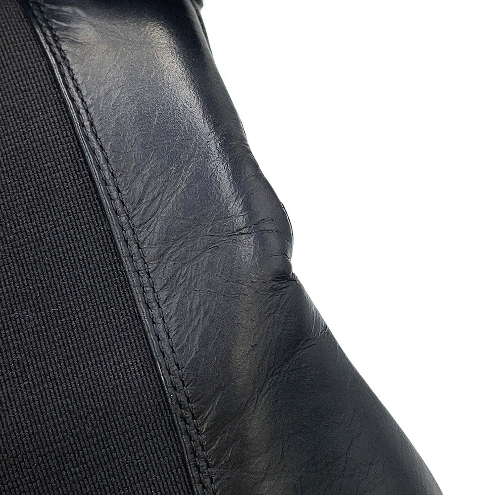 CHANEL CC Logo Side Gore Short Boots BlackG38218 Leather Patent Leather Size 38C