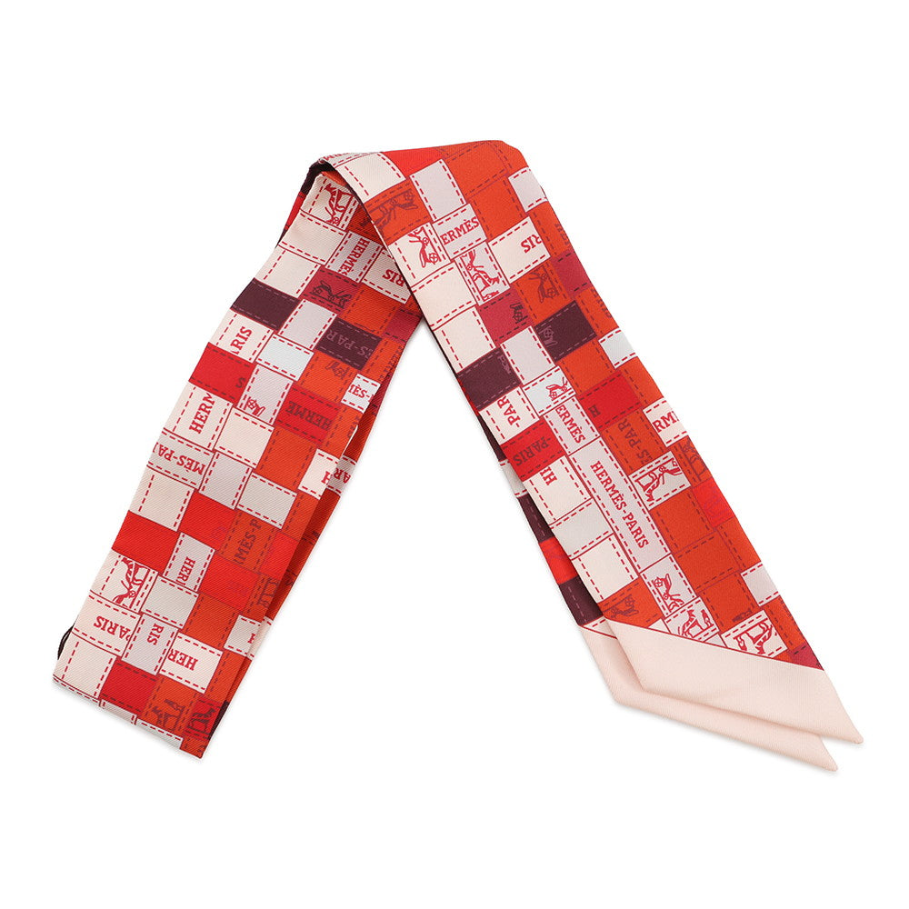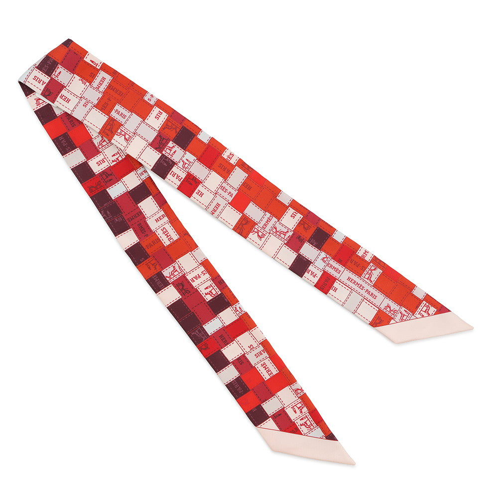 HERMES Twilly Bolduk Rouge/Bordeaux/Creme Silk100%